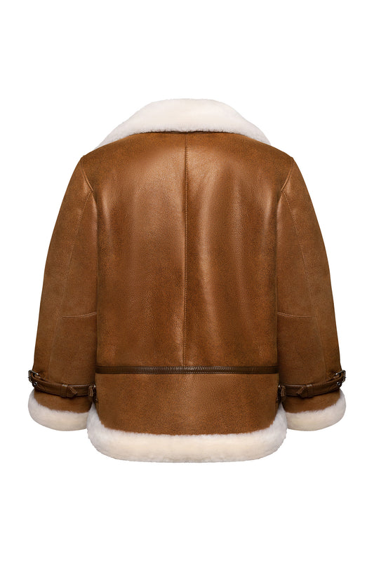 AVIATOR JACKET IN AGED-LEATHER AND SHEARLING