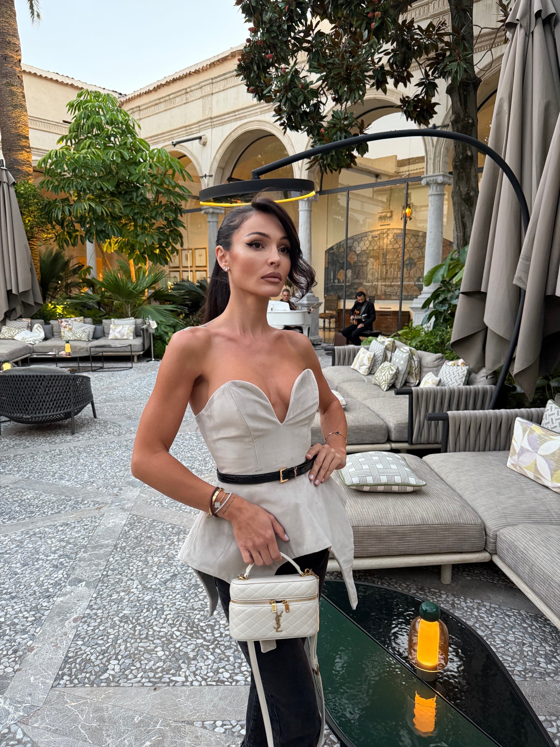 Корсет в сив цвят от кадифе . Закопчаването е с метален цип .